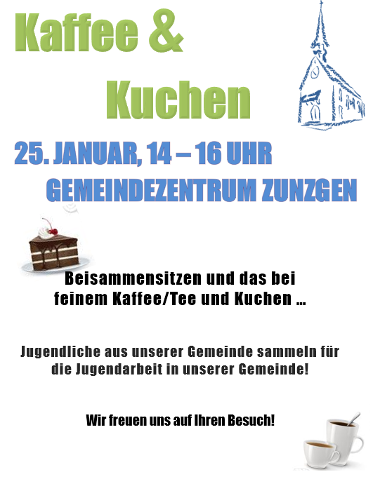 Kaffee und Kuchen Anlass-Familie, Häberli Andreas, Zunzgen, Gemeindezentrum, Wir sammeln zu Gunsten unserer Jugendarbeit